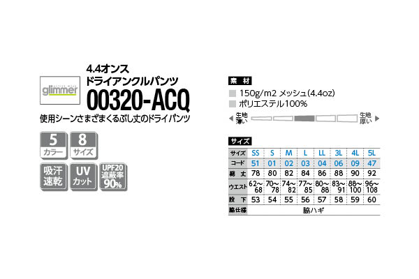 グリマー glimmer 00321-ACR ドライパンツ SS-LL